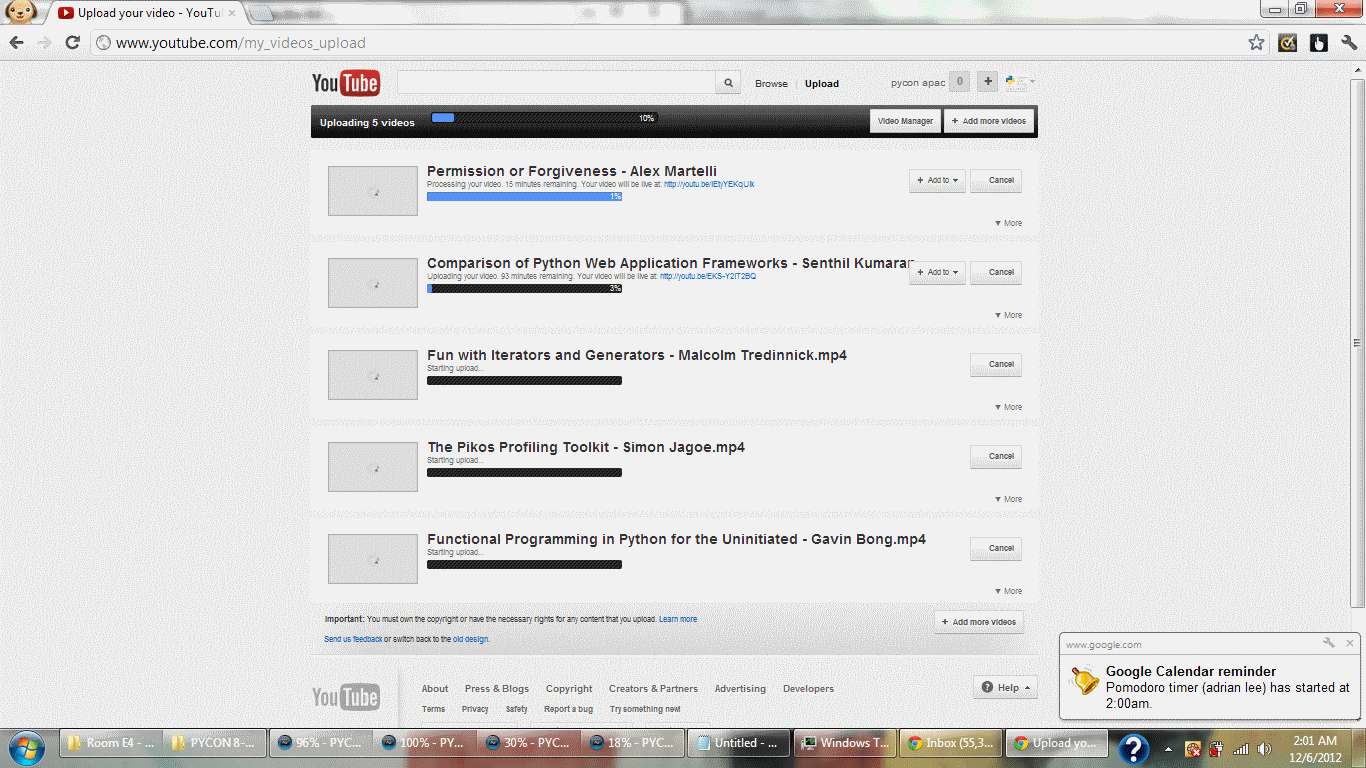 It’s 2 am and I am pushing my new laptop to the limit. Rendering 4 videos on Sony Vegas Pro 8 while uploading another 5 videos to YouTube… and writing this blog at the same time.